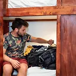 Los cuartos del Compass House Albergue ofrecen camas con iluminación cálida relajante, lámparas para leer y luces de lectura de cabecera. Estos baños disponen de un aseo separado y una ducha.